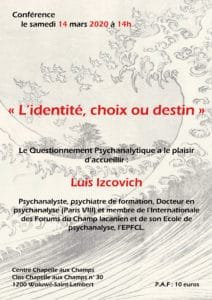 ANNULATION : Luiz Izcovitch. Conférence autour de son livre « L’identité, choix ou destin ? »
